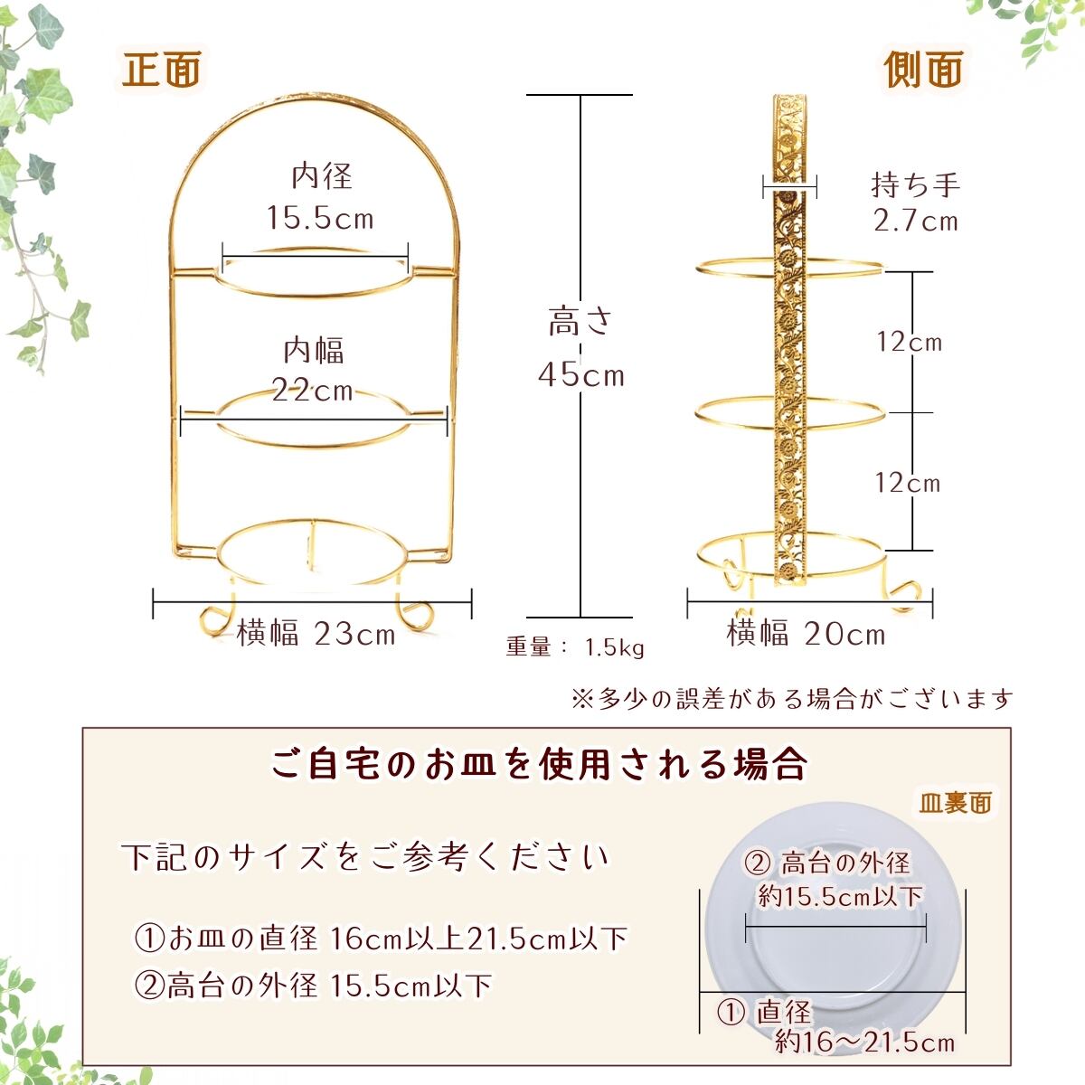 アフタヌーンティー用の金枠ケーキ皿3枚セット